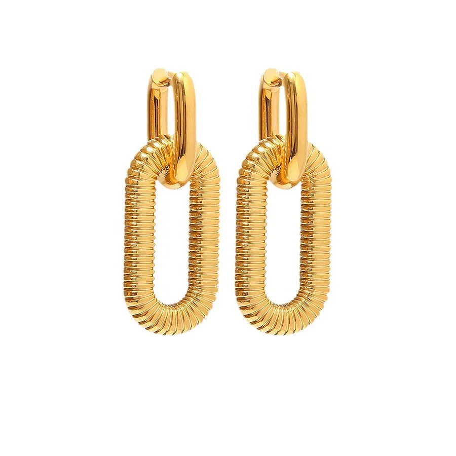 Εντυπωσιακά σκουλαρίκια σε οβάλ σχήμα με  ραβδωτή υφή και έντονη λάμψη. Ένα κόσμημα που τραβάει τα βλέμματα. Φοριούνται μόνα τους χωρίς άλλα σκουλαρίκια, ιδανικά με απλά ρούχα για να κάνουν αντίθεση.