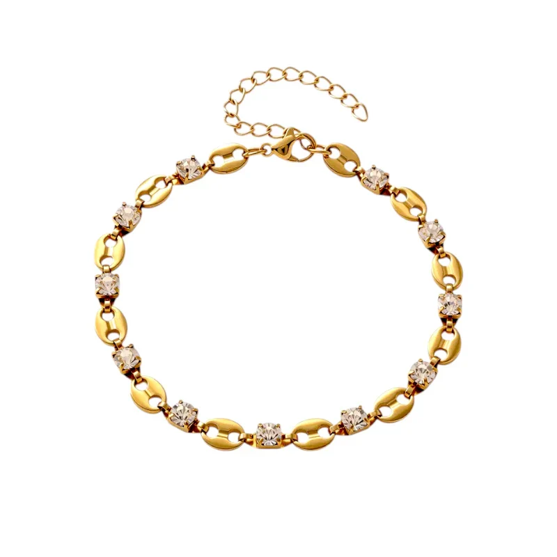 Ατσάλινο Χρυσό Βραχιόλι με Ζιργκόν σε Κλασική Αλυσίδα