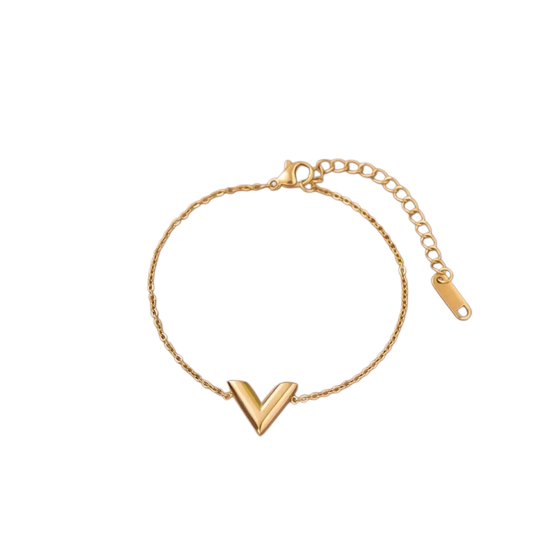 Λεπτό χρυσό βραχιόλι με διακριτικό στοιχείο V. Minimal αισθητική που προσδίδει κομψότητα και διαχρονικότητα. Ιδανικό για layering με άλλα λεπτά βραχιόλια ή μόνο του για διακριτική λάμψη.