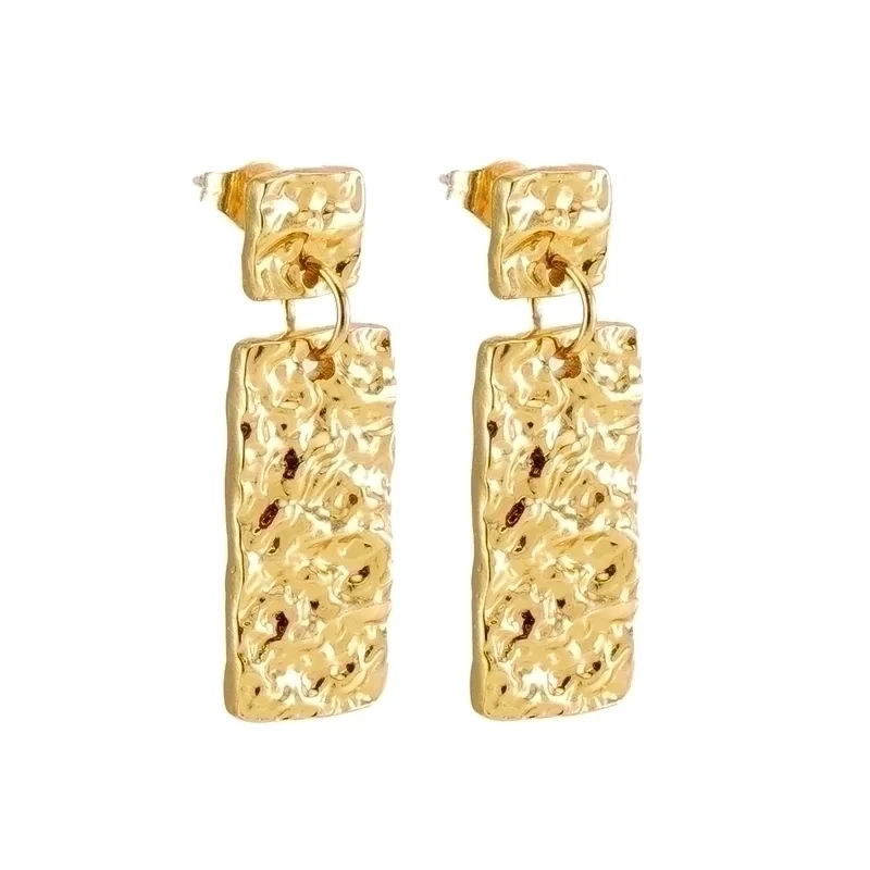 Επιχρυσωμένα ατσάλινα σκουλαρίκια σφυρήλατα ορθογώνιο